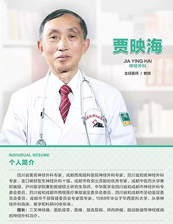 神经外科贾映海教授成功实施三叉神经痛、面肌痉挛、面瘫、颅内肿瘤等神经外科治疗上千例;北京常驻西南脑科张涵博士先后成功实施典型病灶切除手术150例、DBS治疗帕金森病数例,VNS迷走神经刺激术治疗难治性典型20多例、SPN手术周围神经缩窄术治疗偏瘫百余例,还治疗了神经疼痛多达一千多例。
